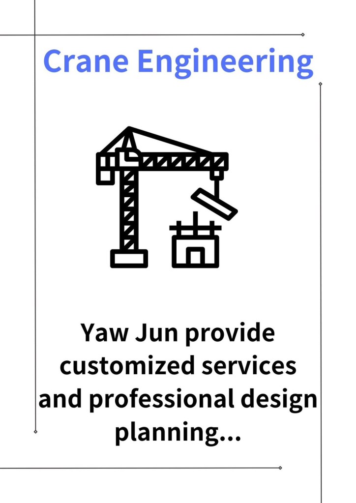 Yaw Jun has a certified manufacturer of 60 metric tons of stationary cranes and 60 metric tons of bridge cranes approved by the Occupational Safety and Health Administration of the Ministry Of Labor of the Executive Yuan.
